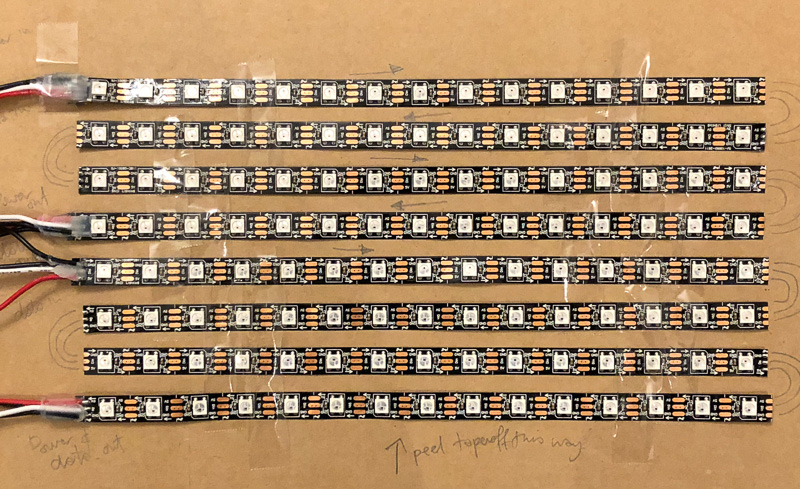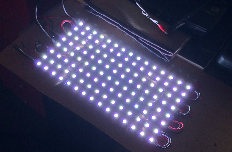 The first thing to do was to get the Fadecandy board powered and connected to a computer in order to test my LED strips to make sure there were no dead LEDs. They're relatively hardy but sometimes die during shipping.