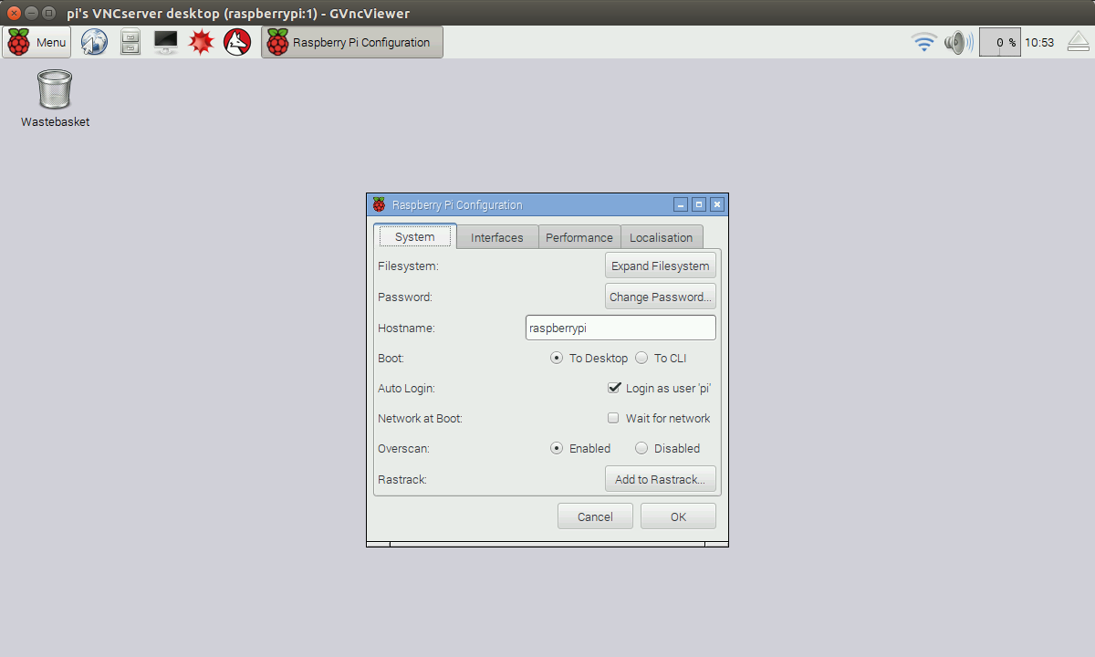 From here setup was a breeze, with one exception. My mouse pointer was lagging and jittering all over the place. A quick search on Reddit revealed that I needed to add a line to the /boot/cmdline.txt config file. This is one of the many places in linux where you can tweak settings as the computer starts up. This issue is likely one that'll be fixed in later versions of Raspbian.