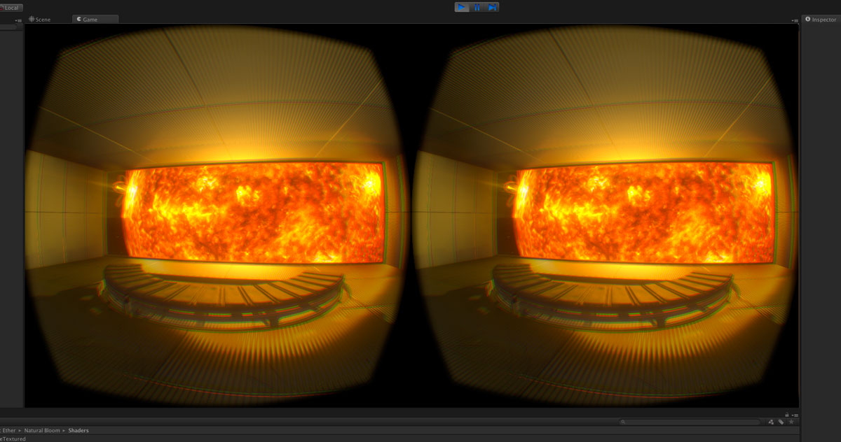 Optically in the Rift view I've got a new starfield in the background [I realise exposure-wise that stars would likely be well under the sun's brightness and thus invisible, but you know, VR!], some sun shafts creating beams of light, some dust motes floating in the room for a little atmosphere [after playing Alien:Isolation in VR I couldn't help it - the modelling and lighting in that game is a masterpiece!] and a few other tweaks in store.