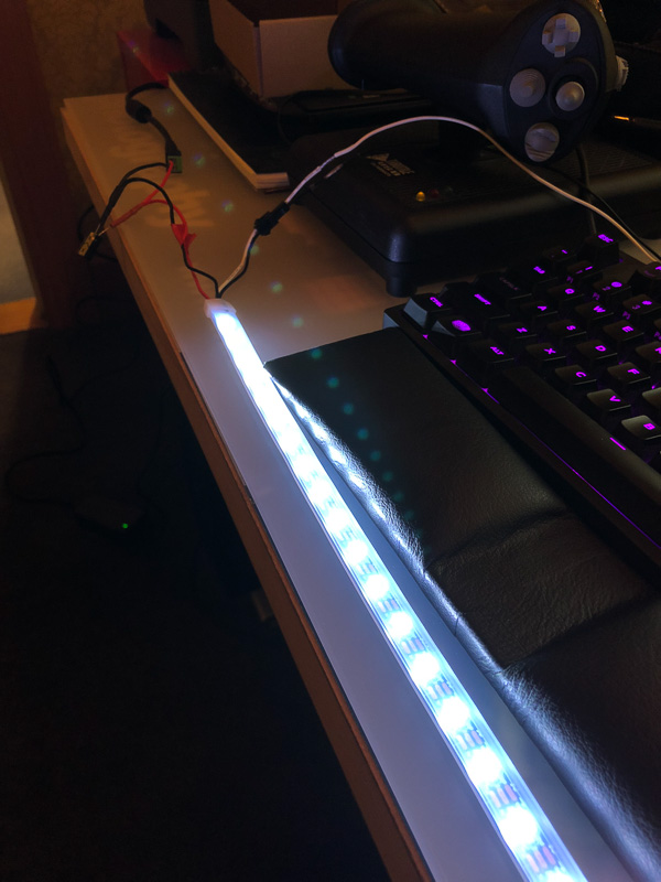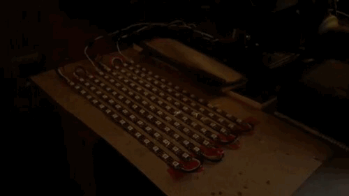 The first thing to do was to get the Fadecandy board powered and connected to a computer in order to test my LED strips to make sure there were no dead LEDs. They're relatively hardy but sometimes die during shipping.